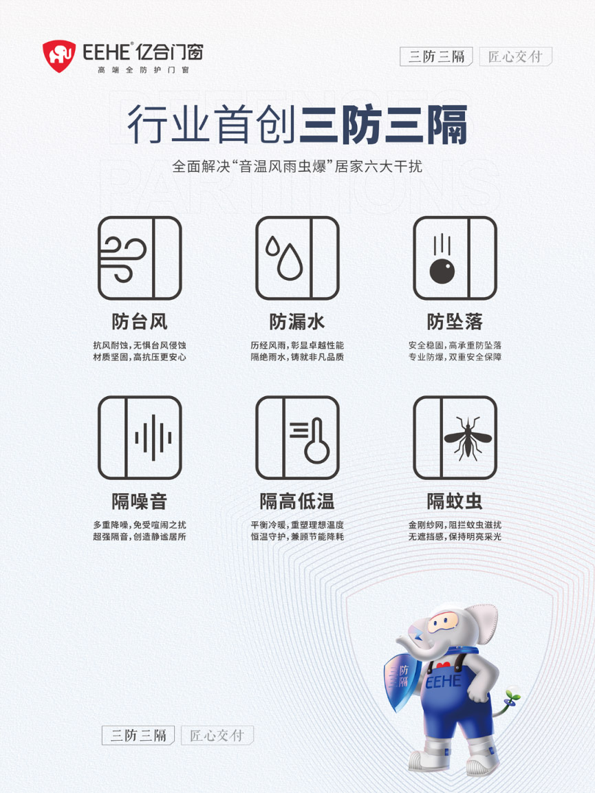 舒適家居的核心,始于安全與安心。億合門(mén)窗秉持“品質(zhì)至上”,從原材料甄選到生產(chǎn)工藝把控,每一個(gè)環(huán)節(jié)都精益求精。依托核心技術(shù)打造“三防三隔”全防護(hù)系統(tǒng),實(shí)現(xiàn)防臺(tái)風(fēng)、防漏水、防墜落,隔噪音、隔高低溫、隔蚊蟲(chóng)的全維度守護(hù)。甄選高強(qiáng)度鋁合金型材與優(yōu)質(zhì)三元乙丙密封膠條,搭配大品牌的精密五金配件,讓產(chǎn)品兼具多重優(yōu)勢(shì)。無(wú)論是狂風(fēng)暴雨的侵襲,還是外界噪音的干擾,都能被有效阻隔,為家居空間筑牢安全屏障,讓居者盡享靜謐安穩(wěn)的生活時(shí)光,這便是品質(zhì)賦予生活的安心保障。