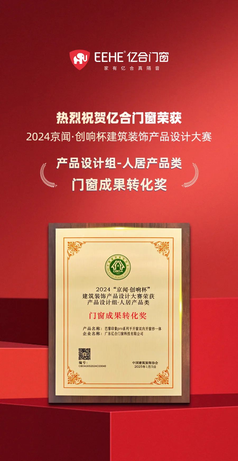 2024“京聞·創(chuàng)響杯”建筑裝飾產(chǎn)品設(shè)計(jì)大賽是由中國(guó)建筑裝飾協(xié)會(huì)主辦,中國(guó)建筑裝飾協(xié)會(huì)材料應(yīng)用分會(huì)、廣東京聞傳媒有限公司承辦的重量級(jí)賽事。經(jīng)專(zhuān)家組的深入考察,億合門(mén)窗憑借創(chuàng)新的產(chǎn)品設(shè)計(jì)和卓越的產(chǎn)品品質(zhì),榮獲“門(mén)窗成果轉(zhuǎn)化獎(jiǎng)”。會(huì)上,大賽專(zhuān)家考察團(tuán)為億合門(mén)窗頒獎(jiǎng),共同見(jiàn)證榮耀時(shí)刻。這一殊榮不僅彰顯了億合門(mén)窗在設(shè)計(jì)與技術(shù)上的雄厚實(shí)力,也體現(xiàn)了行業(yè)對(duì)億合門(mén)窗深耕品牌建設(shè)和產(chǎn)品創(chuàng)新設(shè)計(jì)領(lǐng)域的高度認(rèn)可。