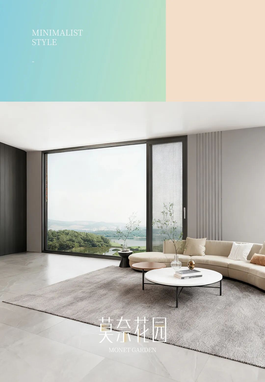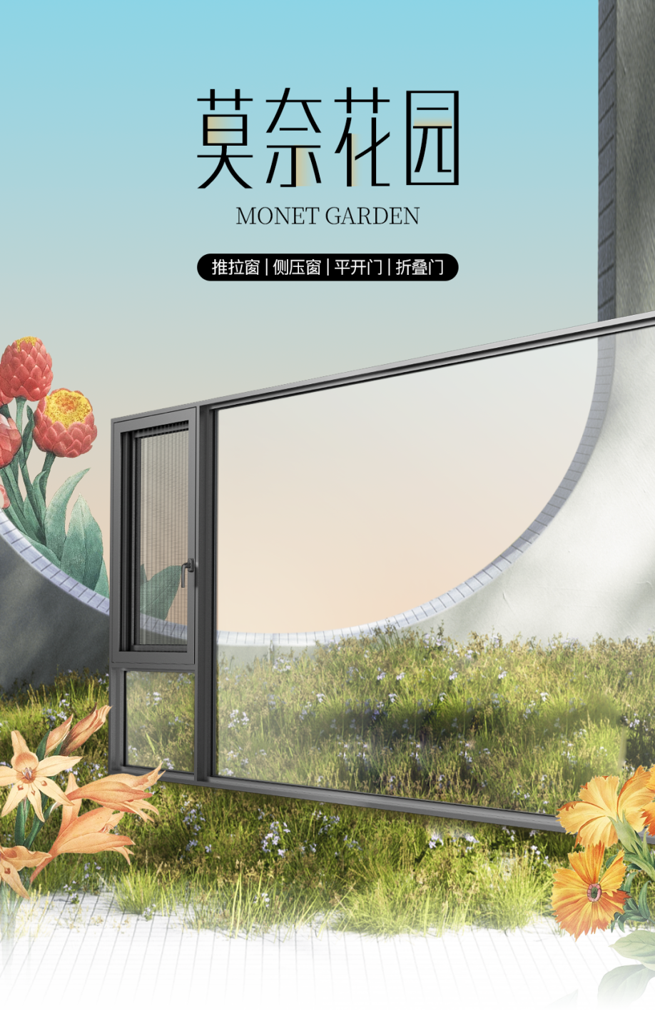 在設計美學層面,「莫奈花園系列」采用極簡主義風格,通過簡約的線條設計與大面積中空玻璃的搭配,最大化拓展室內(nèi)視野;同時,產(chǎn)品提供多種個性化色彩定制方案,可精準適配不同家居裝修風格,滿足消費者對生活美學的多元追求。