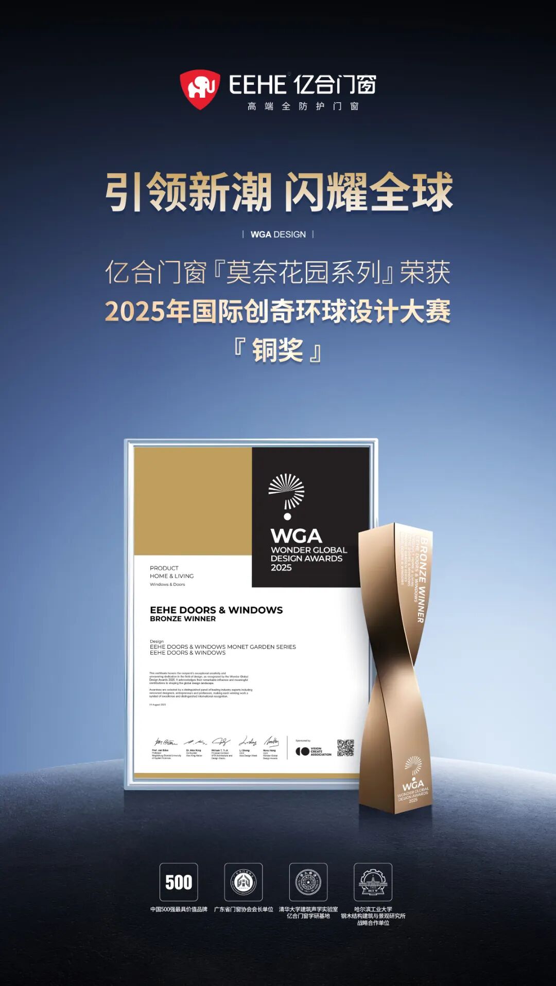 近日,被譽為“全球設計界風向標”的國際創(chuàng)奇環(huán)球設計大賽公布了2025年度獲獎名單。在涵蓋建筑、家居、工業(yè)設計等多個領域的激烈角逐中,億合門窗「莫奈花園系列」憑借其創(chuàng)新設計和高端品質(zhì),榮獲銅獎,且成為本屆大賽中唯一入選并獲獎的門窗品牌,閃耀國際設計舞臺。