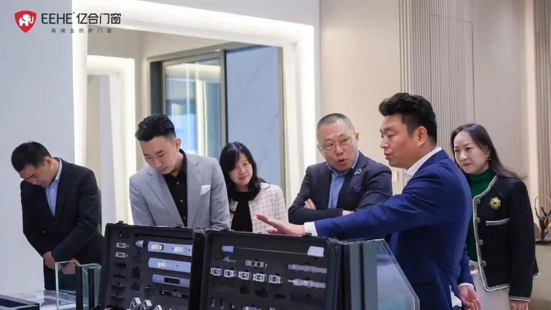 在曾董事長的陪同下,侯主席一行參觀了億合門窗的智能展廳。參觀過程中,曾董事長詳細介紹了億合門窗在行業內率先推出的6S全防護系統與匠心交付體系。侯主席一行紛紛表示對億合高端全防護門窗的設計原理和防護作用有了更深刻的了解和認識。