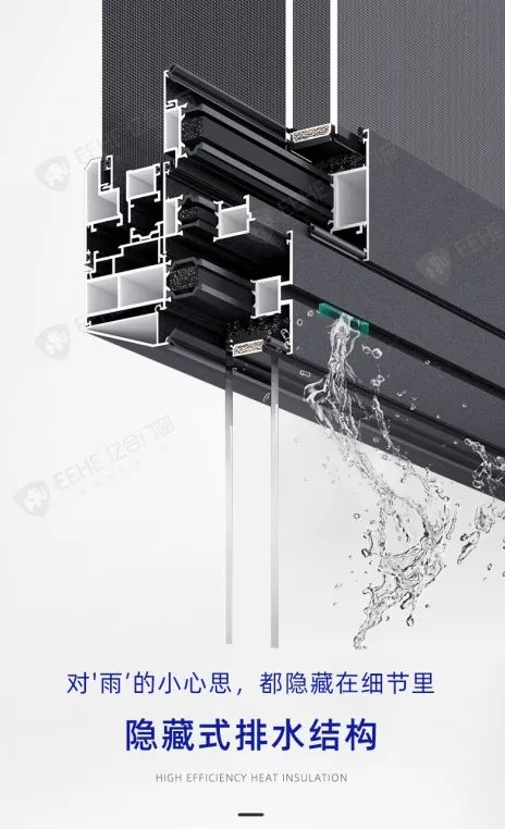 同時(shí)搭配隱藏式排水設(shè)計(jì),依據(jù)等壓腔原理,保證水體的自由流動(dòng),杜絕倒灌現(xiàn)象,即使在暴雨天,也能使排水更加流暢,進(jìn)一步保證門窗的水密性。