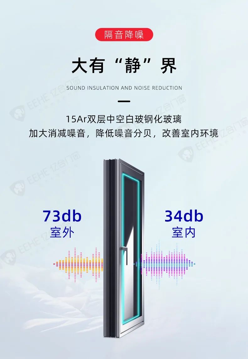 為提高產(chǎn)品的隔音性能,億合高端全防護(hù)門窗秉承精益求精的工匠精神,從細(xì)微之處出發(fā),采用航空級(jí)原生鋁型材,中空玻璃結(jié)構(gòu),多道密封設(shè)計(jì),打造具有優(yōu)異隔音性能的結(jié)構(gòu)體系,有效阻隔噪音,讓生活回歸寧?kù)o舒適,享受春日好睡眠。