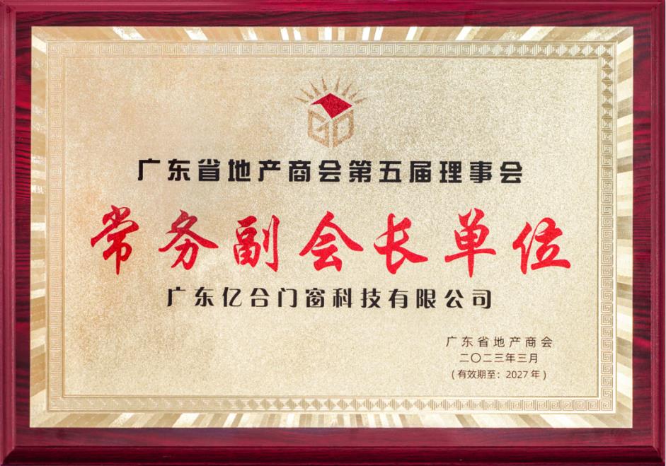 億合門窗榮獲“廣東省地產商會門窗標桿企業”殊榮
