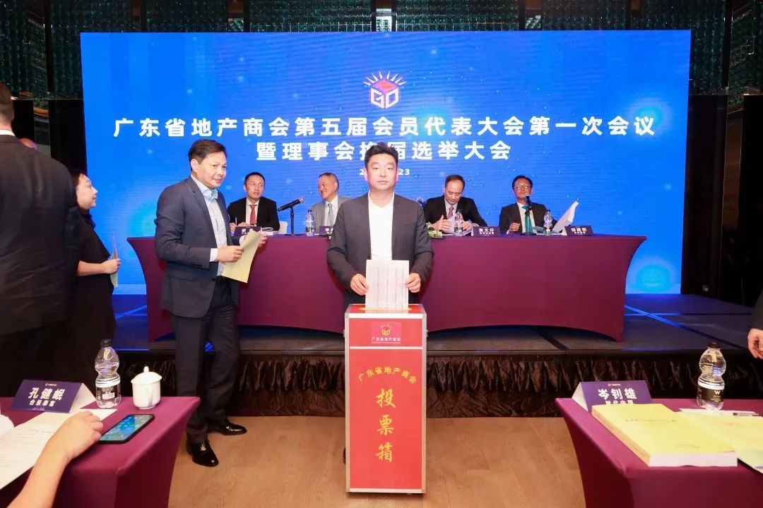 經過理事會全體成員的無記名投票,大會選舉產生了廣東省地產商會新一屆領導班子。富力集團董事長李思廉再次當選商會主席、星河灣集團董事長黃文仔再次當選商會會長,萬科企業股份有限公司董事會主席郁亮當選新一屆聯席會長,廣東省門窗協會會長、億合門窗董事長曾奎當選常務副會長。