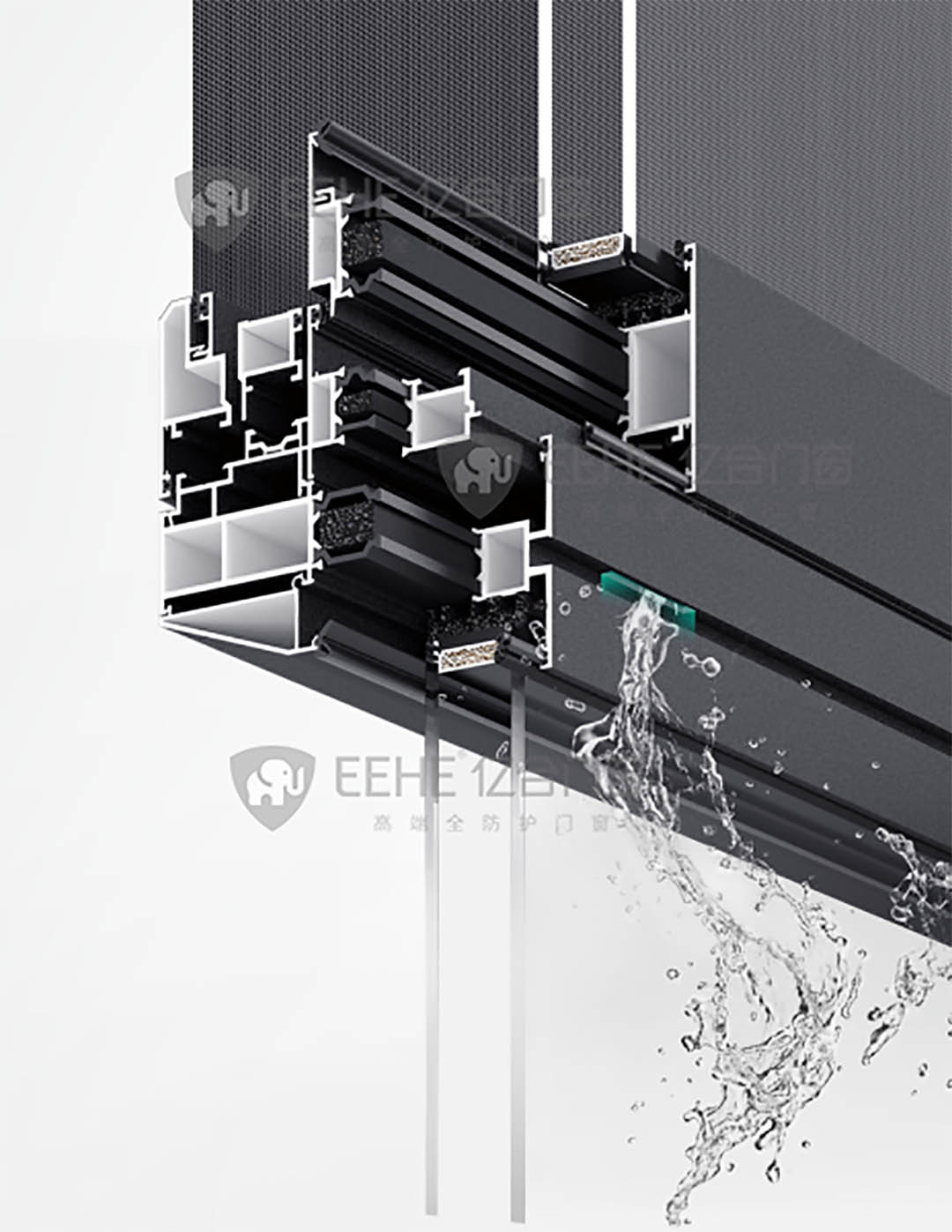 億合門窗的隱藏式排水結構,利用等壓腔原理,將排水孔垂直向下,腔內積水統一往下引流至室外,排水動力足,不易積水,避免雨水倒灌。同時,億合門窗采用多道密封工藝,甄選耐候性極好的三元乙丙密封膠條,輕松杜絕了雨天滲漏的難題。