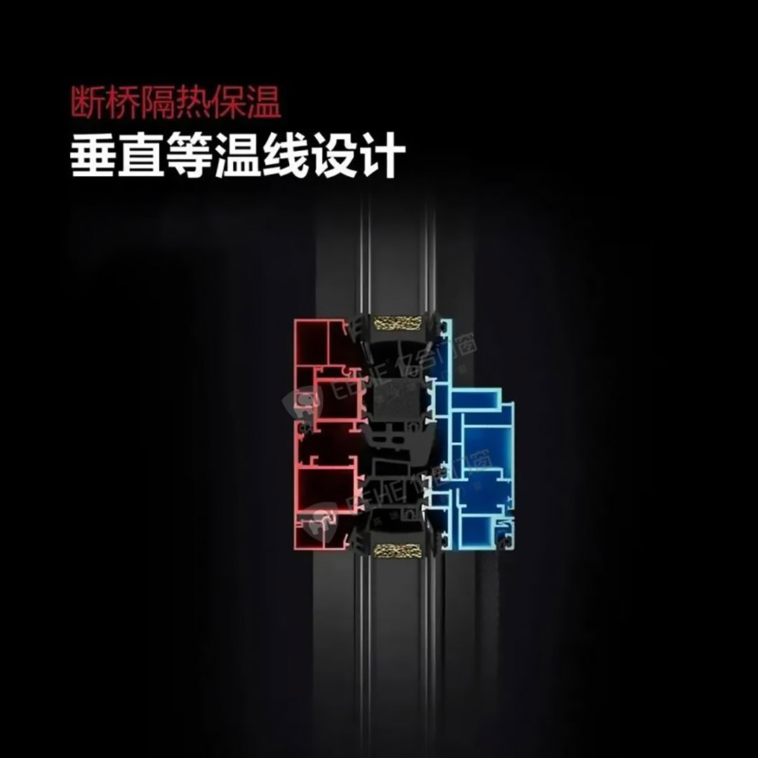 為了更有力有效地減少能耗損失,實現綠色環保。億合門窗整框沿用垂直等溫線設計,使玻璃中空腔體、玻扇的隔熱條腔體、窗框的隔熱條腔體都齊平位于同一條垂直線上,形成一道冷熱橋屏障。在空調開啟時,能防止冷氣流失室外,保持室內舒適溫度,達到隔熱節能的最佳作用,以科學降耗,節省大半空調電費。