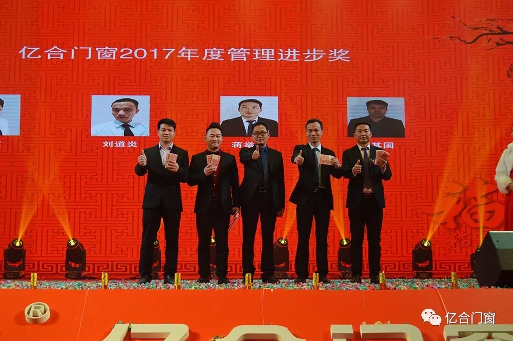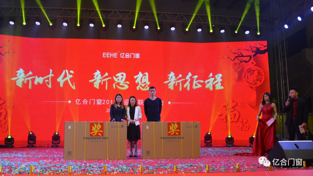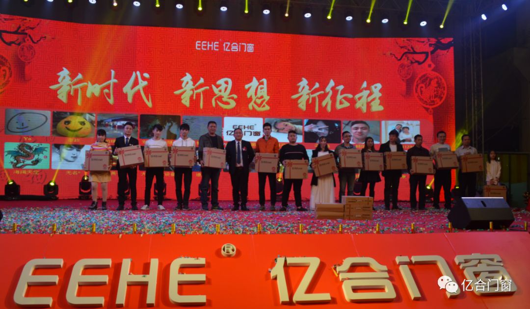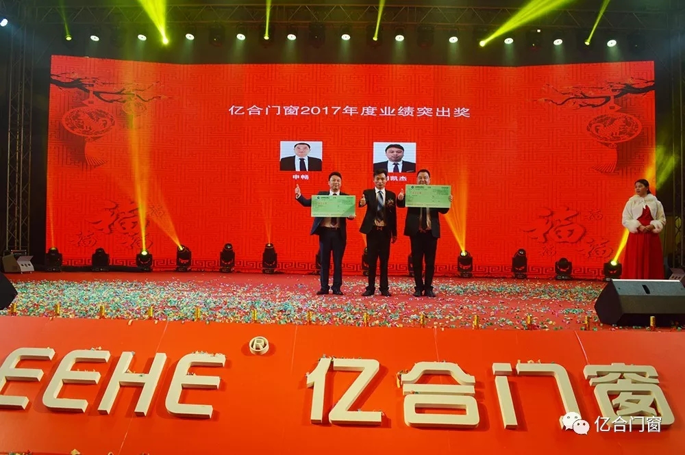 2018年1月19日,“億合門窗2018年迎春聯歡晚會”在億合門窗科技園隆重舉行。億合門窗董事長曾奎、常務副總經理胡超、副總經理吳忠用、億合門窗各大供應商、全國戰略合作伙伴部分代表及全體億合門窗家人共計1800余人一起歡聚一堂,為2017年畫下圓滿句號。