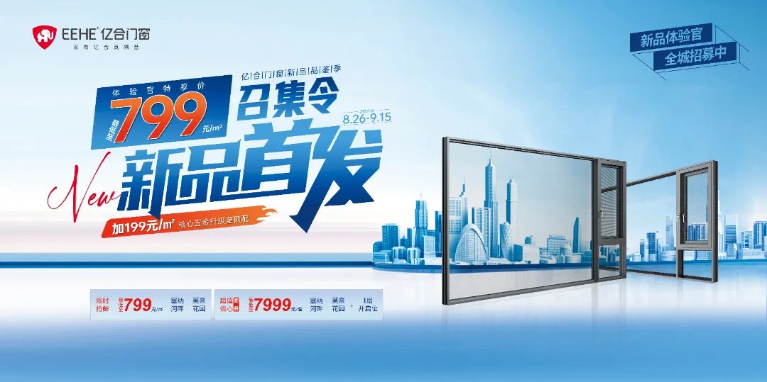 為把高品質的舒適生活帶到千家萬戶,億合門窗提質不提價,針對本次新品發布的普惠力度進行同步升級,以最低至799元/㎡的體驗單品特惠,全屋超值7999元組合套餐限量推送,在線上官方旗艦店和終端門店發售,向全國召集新品體驗官,用更具性價比與質價比的門窗產品,滿足用戶一站式定制需求,讓消費者省錢、省心、省力,輕松煥新品質美好家!