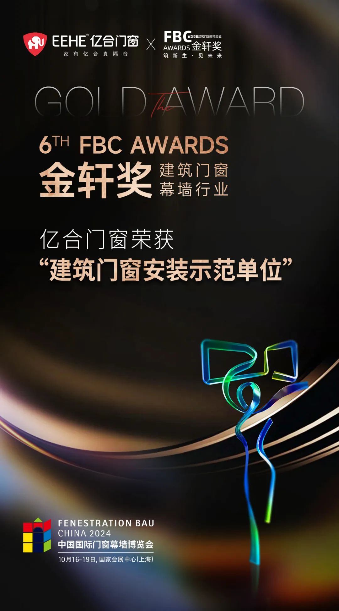 第六屆FBC“金軒獎”榮耀揭曉,億合門窗榮獲三項大獎!