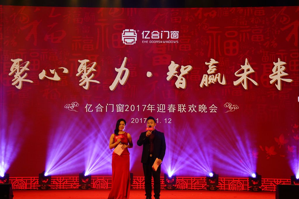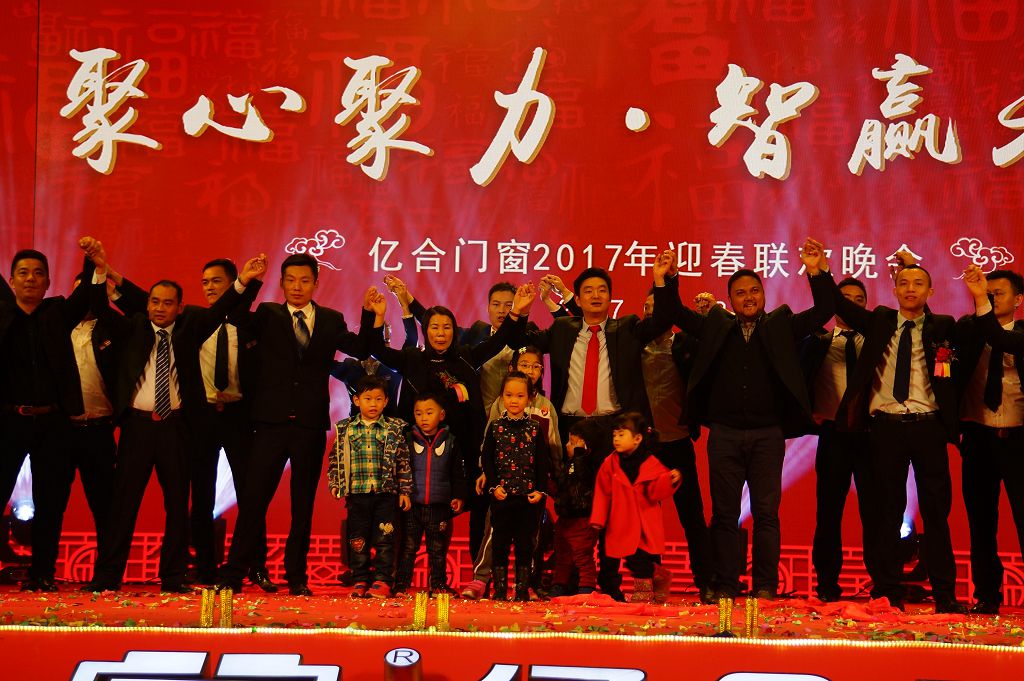 2017年1月12日,以“聚心聚力·智贏未來”為主題的“億合門窗2017年迎春聯歡晚會”在億合門窗科技園隆重舉行。突如其來的降溫絲毫沒有阻擋億合門窗家人喜迎新春的熱情,億合門窗董事長曾奎、常務副總經理胡超、副總經理吳忠用、億合門窗各大供應商、全國戰略合作伙伴部分代表及全體億合門窗家人共計1500余人一起歡聚一堂,為2016年畫下圓滿句號。
