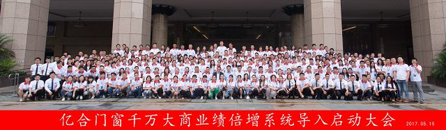 2017年5月15日,億合門窗千萬大商業績倍增系統啟動大會在佛山皇冠假日酒店隆重舉行,來自全國各地的億合家人齊聚一堂,進行三天兩夜緊張而又愉快的學習。