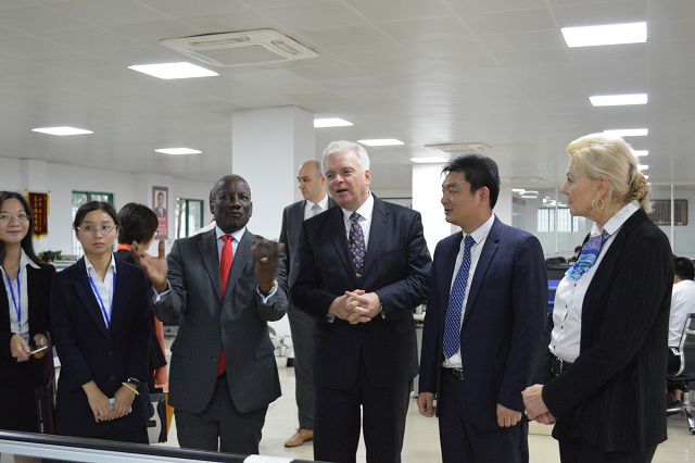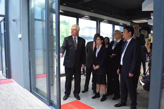 11月15日,中國前駐柬埔寨、新加坡和泰國大使傅學(xué)章,商務(wù)部中國國際經(jīng)濟合作學(xué)會副秘書長、對外交流中心主任戴緒龍,斯洛伐克駐華大使杜尚-貝拉及夫人,納米比亞駐華大使埃利-喬治、葡萄牙駐華大使館參贊康博斯、匈牙利駐華大使館參贊高博-賽蓋伊等一行蒞臨億合門窗參觀指導(dǎo)。億合門窗董事長曾奎及夫人、億合門窗常務(wù)副總經(jīng)理胡超先生等公司領(lǐng)導(dǎo)熱情接待并陪同考察。