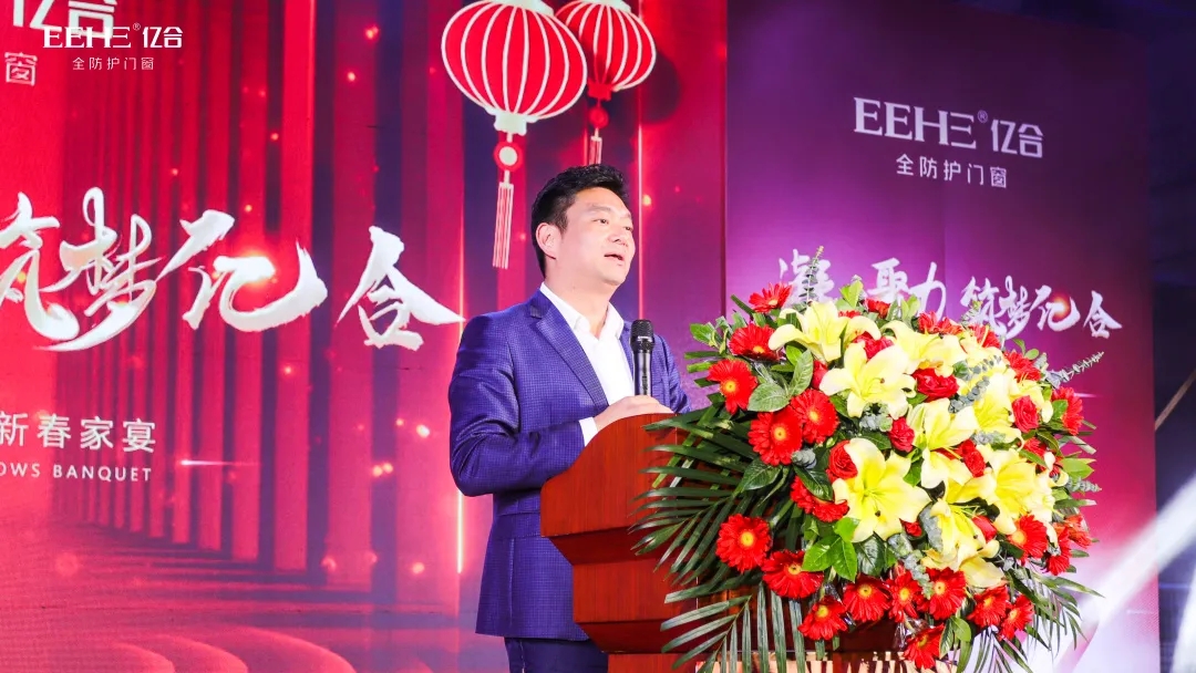 家宴伊始,億合門窗董事長曾奎致歡迎詞。曾董對過去一年里億合家人們的辛勤付出以及戰略合作伙伴的鼎力支持表示衷心感謝,并表達了億合門窗新一年發展的美好期許。他表示,2022年億合門窗將全力以赴,為行業注入新的活力,向著品牌的使命砥礪前行。