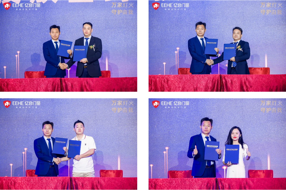 大會上,億合門窗總經理—— 胡超分別與上海匯創廣告有限公司、廣州路局廣告有限公司、路鐵傳媒事業華南運營中心、新浪家居門窗事業部進行戰略投放合作簽約儀式,標志著億合門窗將聚勢完善全國高速網絡權威媒體的矩陣式傳播布局,向外界震撼發聲,全面開啟品牌“向下扎根,向上推廣”的新航道。