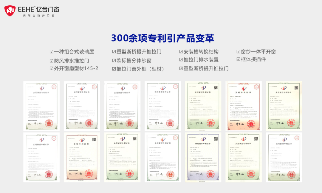 14年匠心智造,億合門窗一直以“億兆同合 大象無形”為初心,專注于全防護系統(tǒng)門窗研發(fā)、制造和銷售。先后獲得國家3C認(rèn)證、ISO國際檢測、ISET國際認(rèn)證等多項權(quán)威認(rèn)證以及“亞洲品牌500強”、“家居消費者口碑品牌”等榮譽稱號,并連續(xù)5年躋身“中國500最具價值品牌”,實力雄厚。作為廣東省門窗協(xié)會會長單位,億合門窗還不斷以創(chuàng)新驅(qū)動發(fā)展,300余項專利引領(lǐng)產(chǎn)品迭代變革。