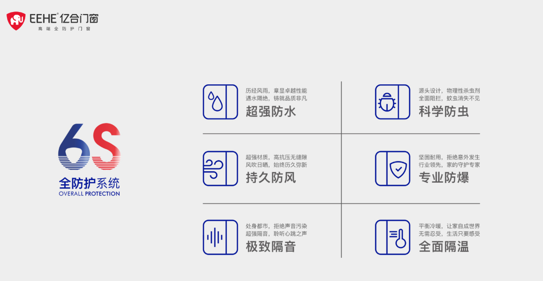 億合門窗在全行業(yè)首創(chuàng)6S全防護系統(tǒng),以覆蓋“春夏秋冬全四季,東經(jīng)北緯帶兩極,蚊蠅蟲&多聲噪,風(fēng)霜雨雪沙雷雹”的研發(fā)標(biāo)準(zhǔn)進行360°全方位防護產(chǎn)品矩陣打造。本次獲得SGS國際認(rèn)證,具有重要的行業(yè)風(fēng)向標(biāo)意義。