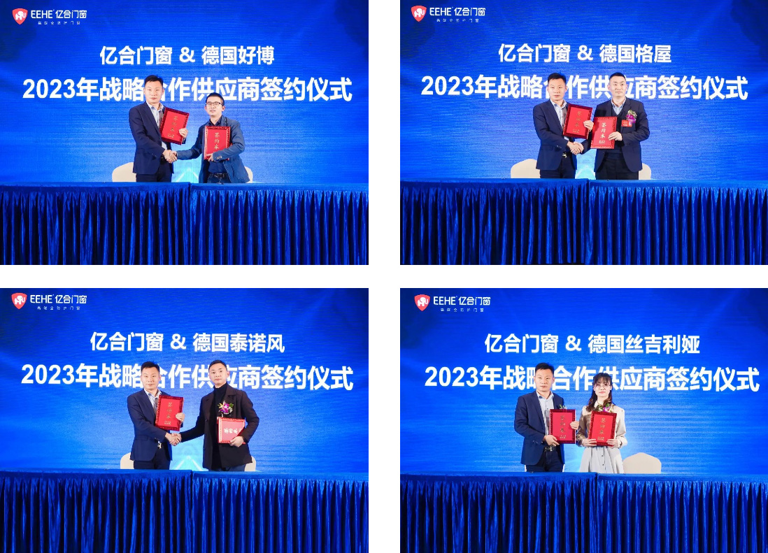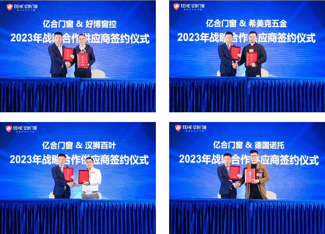 群英聚勢,再起風(fēng)云。大會現(xiàn)場,供應(yīng)商伙伴暢所欲言,分享經(jīng)營合作經(jīng)驗,在新的發(fā)展趨勢下,共謀產(chǎn)業(yè)合作發(fā)展新方向。基于進(jìn)一步深化與廣大供應(yīng)商建立高效緊密的合作機制,億合門窗在大會現(xiàn)場分別與13家供應(yīng)商簽署戰(zhàn)略合作協(xié)議,雙方將在供應(yīng)鏈服務(wù)、倉單業(yè)務(wù)等領(lǐng)域達(dá)成戰(zhàn)略合作,筑牢未來供應(yīng)鏈的“關(guān)鍵底座”。