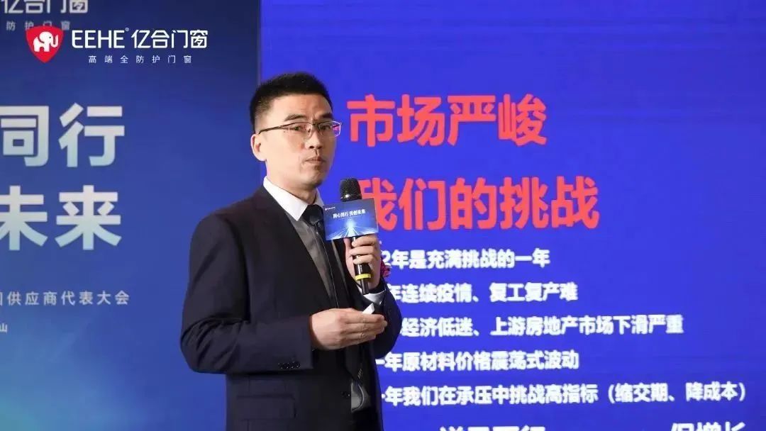 大會上,總經(jīng)理胡超對2023年的經(jīng)營規(guī)劃進(jìn)行了詳細(xì)解讀。胡總指出:億合門窗始終堅持把合作伙伴的利益放在與公司利益同等重要的位置一起考慮。要實現(xiàn)雙贏的合作局面,合作雙方都要站在最終的客戶立場上多想想、多體諒、多考慮,從而促進(jìn)合作雙方公司企業(yè)的共同發(fā)展。未來億合門窗也將不斷完善供應(yīng)商管理體系,加強準(zhǔn)入和汰換機制,開啟2023年的供應(yīng)鏈優(yōu)化建設(shè)和產(chǎn)品力提升計劃,把與供應(yīng)商協(xié)同共贏的理念向縱深發(fā)展。