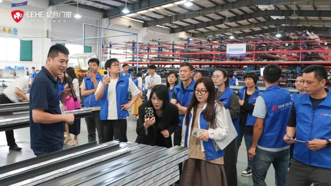 培訓課程結束后,商學院導師團隊帶領新商實地探訪總部工廠。通過沉浸式參觀,新商直觀感受億合門窗嚴格的生產標準與精湛工藝,深入了解產品專利技術、功能特性及工藝細節。導師現場答疑解惑,幫助新商深化產品認知,切實提升學習成效。