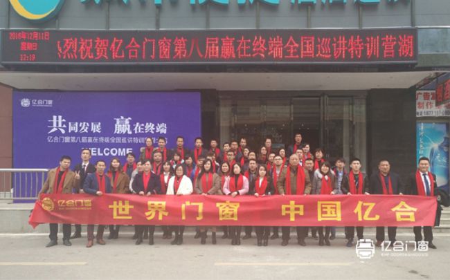 為幫助全國億合門窗加盟代理戰(zhàn)略合作伙伴更好、更快成長,2016年12月11日--12日,為期兩天的《億合門窗贏在終端全國巡講特訓(xùn)營》在湖北武漢隆重舉行。湖北區(qū)域各門窗加盟代理旗艦店、專賣店老板、店長及銷售精英共同參與此次為期兩天的培訓(xùn)活動!