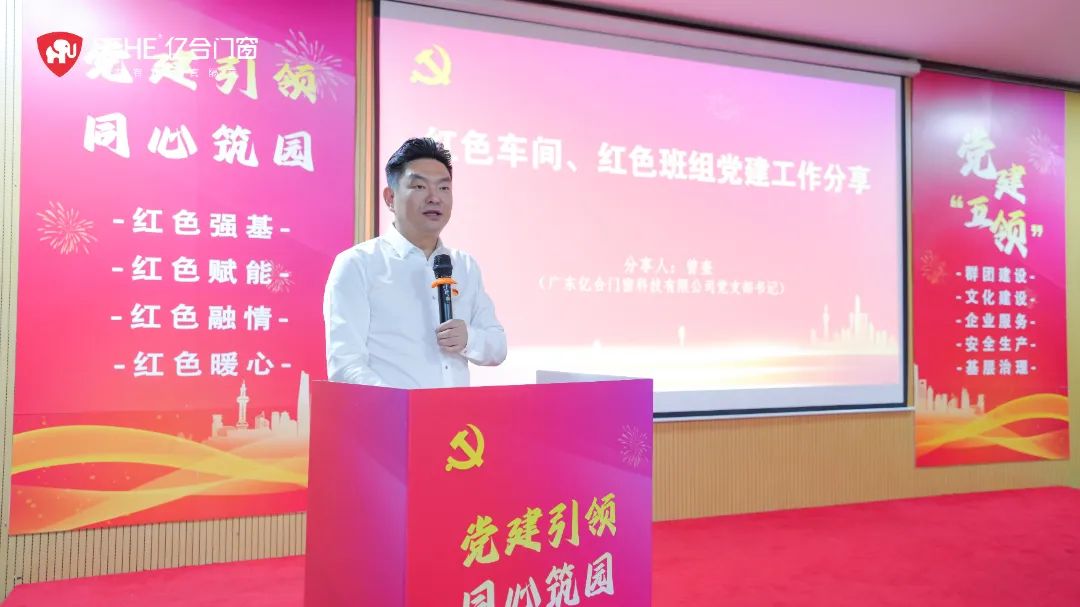 廣東億合門窗科技有限公司黨支部書記、董事長(zhǎng)曾奎對(duì)企業(yè)“紅色車間”、“紅色班組”黨建工作作經(jīng)驗(yàn)分享,介紹億合門窗堅(jiān)持黨建工作與經(jīng)營(yíng)工作同步謀劃、一起部署、一并推進(jìn)。面對(duì)當(dāng)前的經(jīng)濟(jì)形勢(shì),更需要拉動(dòng)“黨建促經(jīng)營(yíng),經(jīng)營(yíng)強(qiáng)黨建”的內(nèi)循環(huán),未來億合門窗黨支部及全體黨員都將以更加堅(jiān)定的信念,更加飽滿的熱情,更加務(wù)實(shí)的作風(fēng),投身于公司的各項(xiàng)經(jīng)營(yíng)與黨建工作中去,凝心聚力,共擔(dān)使命,助力產(chǎn)業(yè)園區(qū)譜寫高質(zhì)量發(fā)展新篇章!