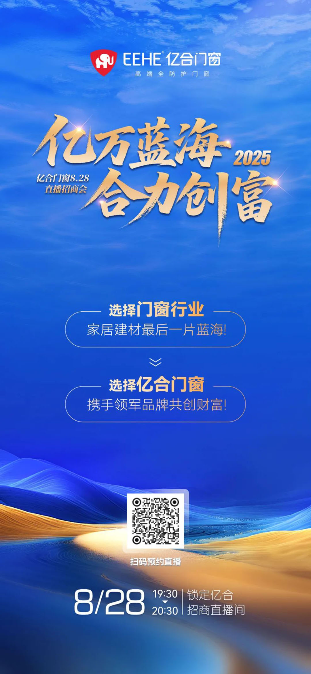 億萬藍海·合力創富 | 億合門窗8.28直播招商會即將火熱開啟!