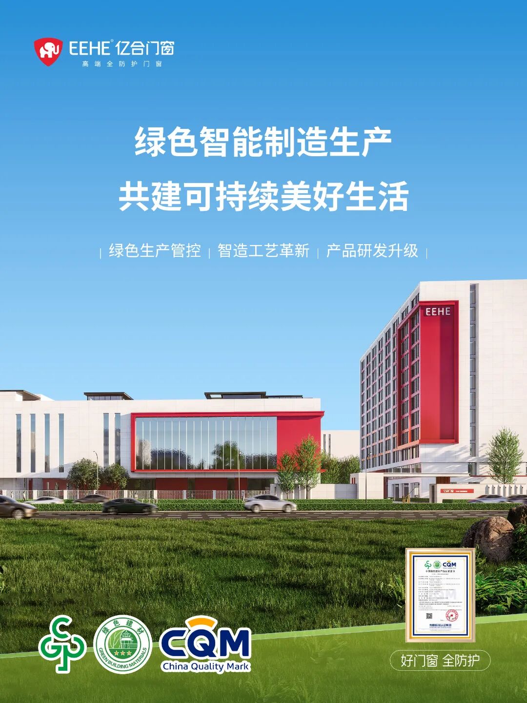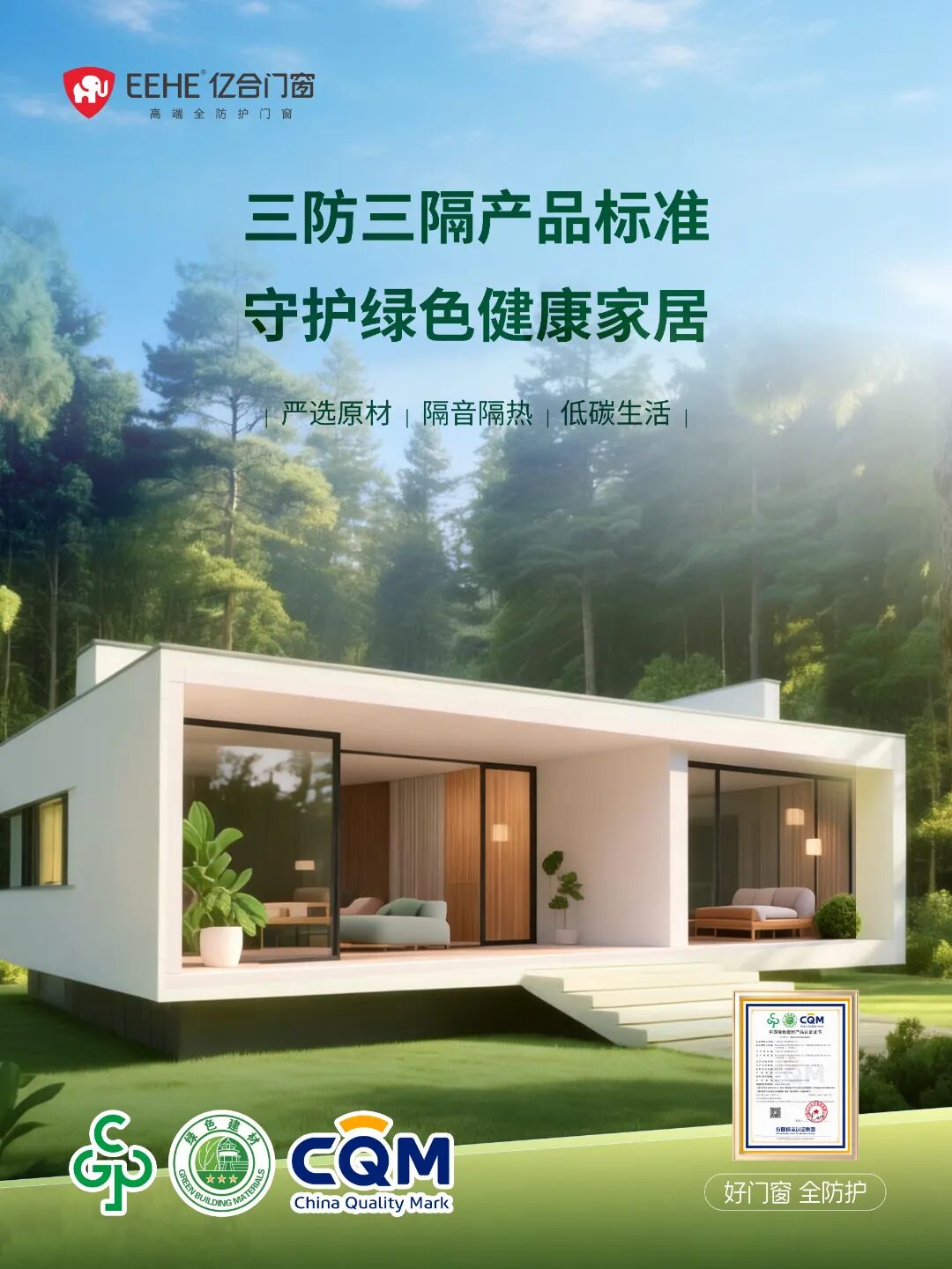 為響應國家推動建設安全、舒適、綠色、智慧的“好房子”的號召,億合門窗踐行綠色低碳發展,秉持“好房子裝好門窗”的核心理念,將綠色低碳融入產品研發與生產全鏈條,持續推進高性能綠色全防護門窗的普及應用。