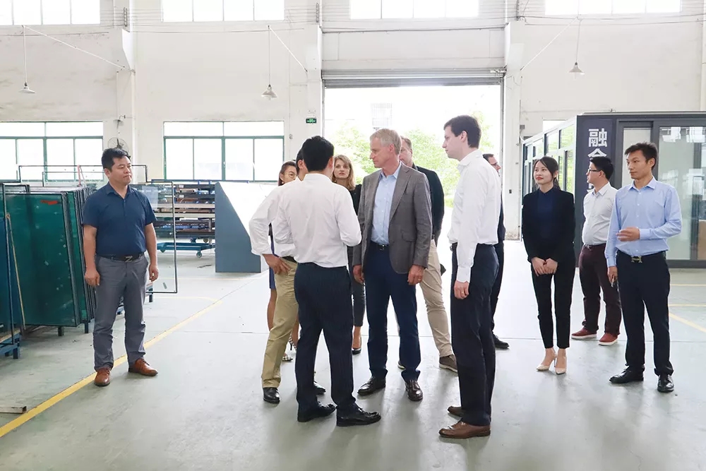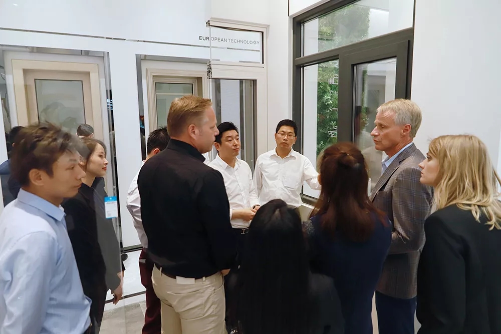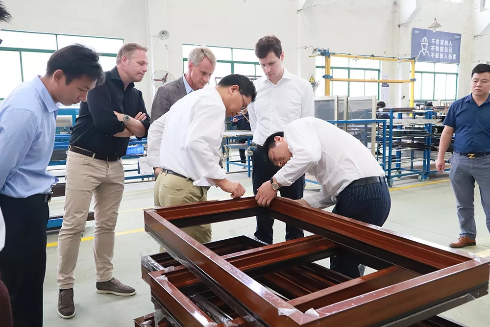 在廣東億合門窗有限公司董事長曾奎先生、總經(jīng)理胡超先生、建筑工程總監(jiān)吳先生、億合南京分公司總等高層領(lǐng)導(dǎo)的熱情接待和親自陪同下,德國好博(HOPPE)集團(tuán)考察團(tuán)一行從1000平米現(xiàn)代化展廳,到大規(guī)模系統(tǒng)化生產(chǎn)車間,所到之處,留下了一個(gè)個(gè)精彩而動人的交流瞬間。