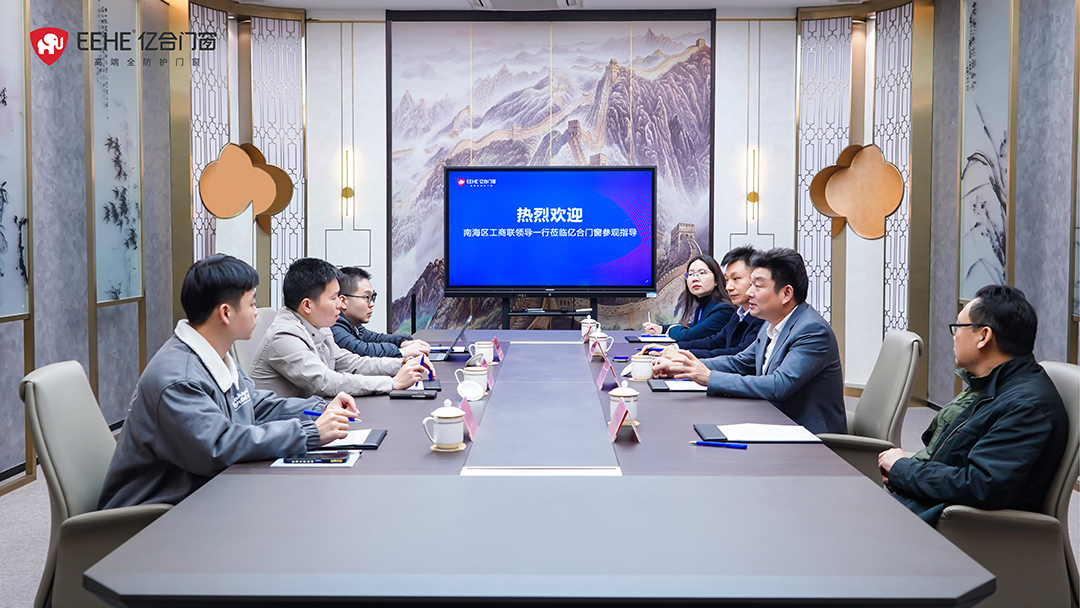 12月8日,南海區委統戰部副部長、區工商聯黨組書記、常務副主席梁耀智、南海區工商聯秘書長、會員股股長蒙慧波、區總商會秘書丁學聰等一行蒞臨億合門窗調研指導。億合門窗董事長曾奎、總經理胡超攜公司高管熱情接待。