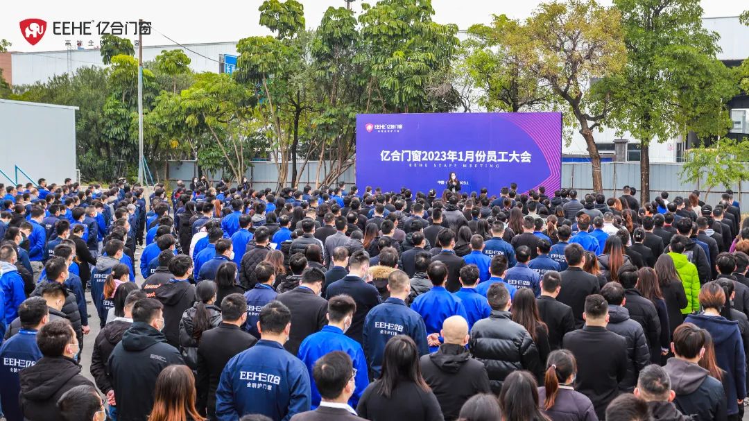 金虎辭舊歲,福兔迎新年。1月3日上午,億合門窗2023年首場全體員工大會在公司新擴建的生產基地隆重召開,正式掀開2023年全新篇章,億合門窗董事長曾奎,總經理胡超攜全體員工1500余人共同出席大會。
