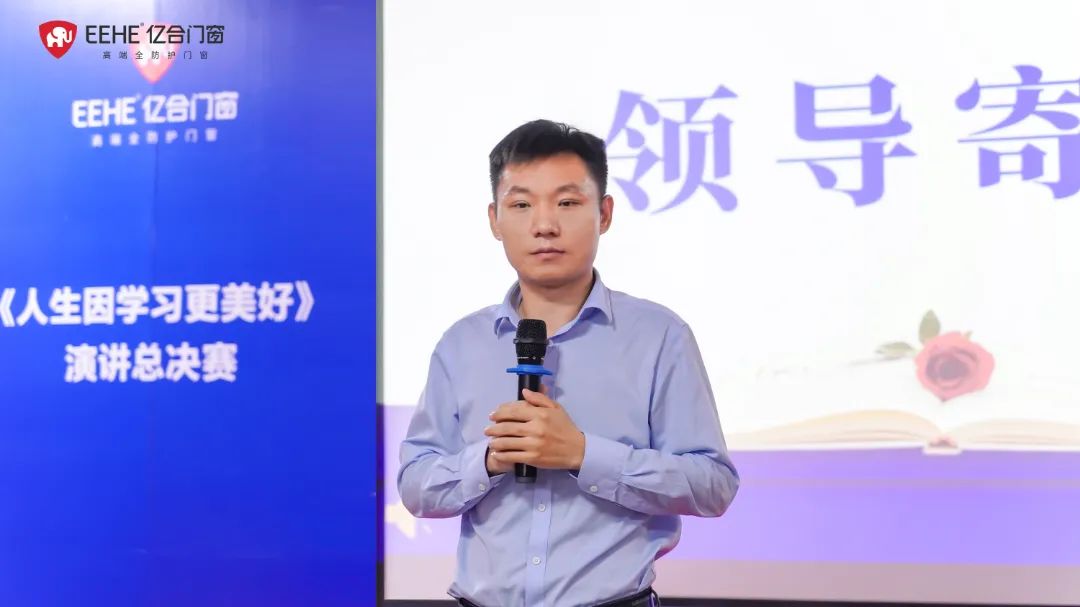 讀書提升自我,知識點亮人生。活動尾聲,公司總經理胡超作點評講話。胡總首先高度肯定了舉辦本次活動的意義和每位參賽選手的展現成果,認為讀書活動既是職工展現自我的機會,也是公司發現人才、挖掘人才的途徑。胡總倡導,億合門窗的每一員工都要深入閱讀、持續閱讀、愛上閱讀,讓閱讀成為一種汲取正能量的生活方式。