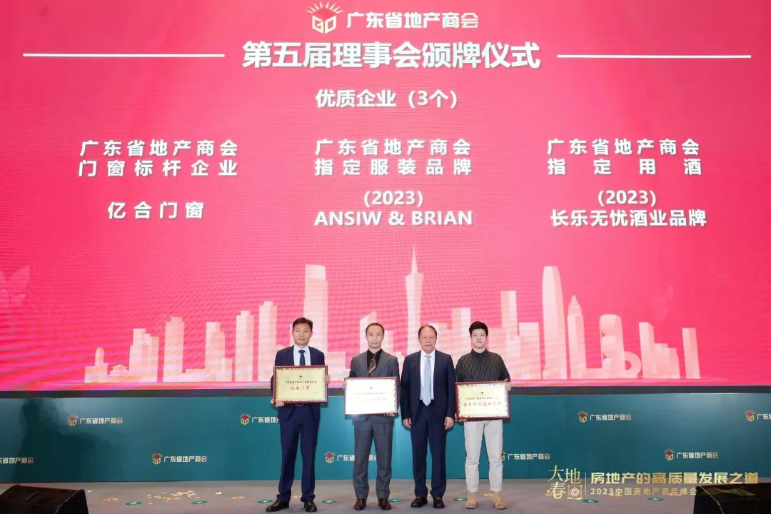 峰會上,舉行了優質企業授牌儀式,億合門窗憑借在門窗領域深厚的專業功底,領先行業的產品,強大的品牌影響力,成功榮獲“廣東省地產商會門窗標桿企業”殊榮。