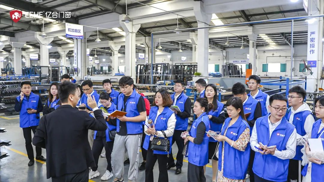 4月17日,華美立家集團副總裁熊偉一行蒞臨億合門窗參觀交流。億合門窗總經理胡超攜公司渠道賦能中心、新商運營中心、招商中心負責人熱情接待。